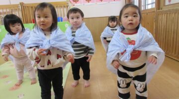 宗方こども園では、各年齢ごとにクラス分けし、発達に応じた計画に基づいて教育・保育を行っています。 また、異年齢児との交流も大切にしています。