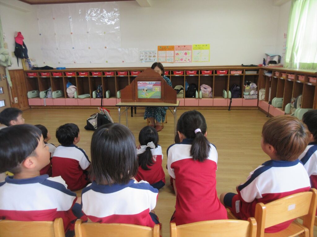 紙芝居や絵本を夢中で見る子どもたちでした✨