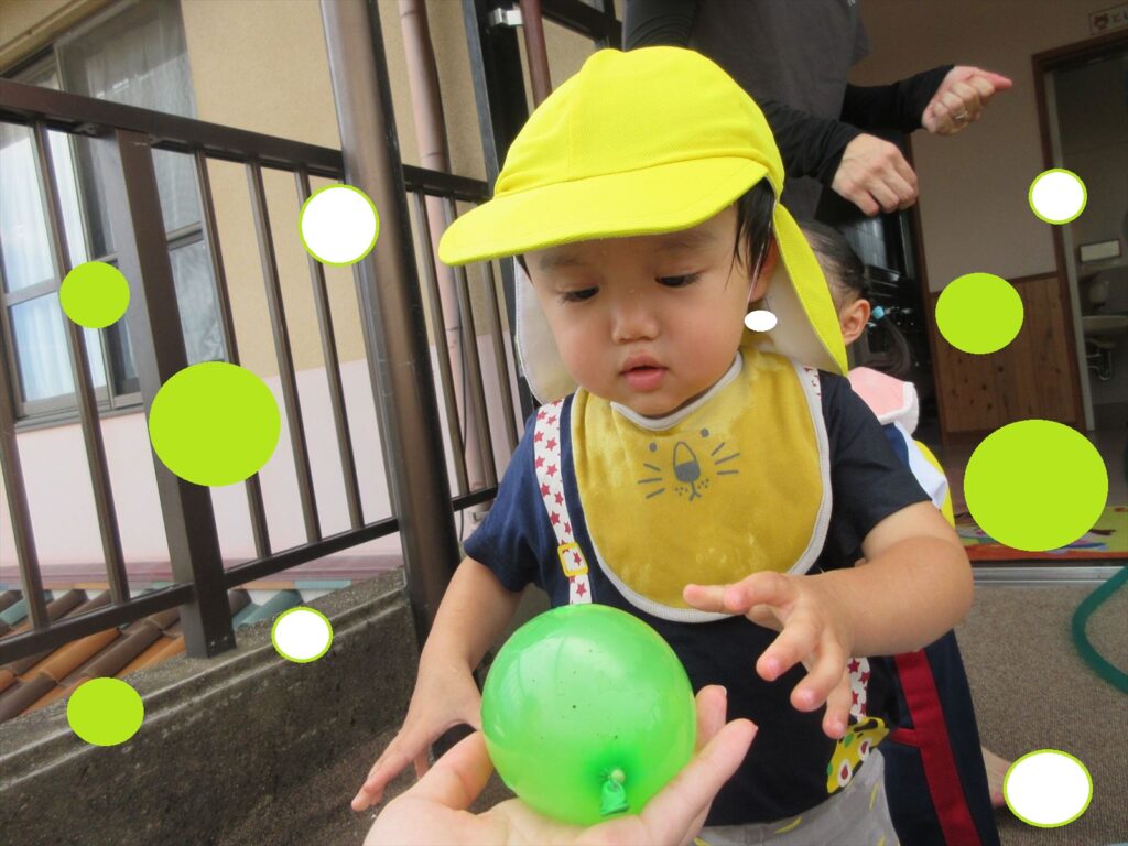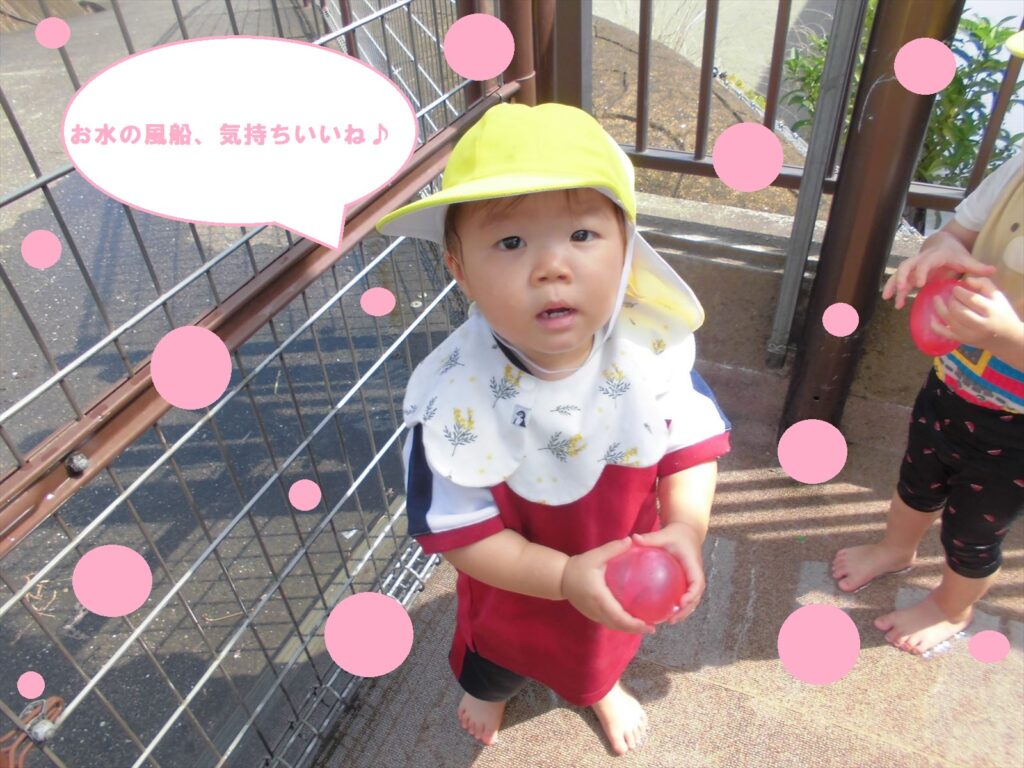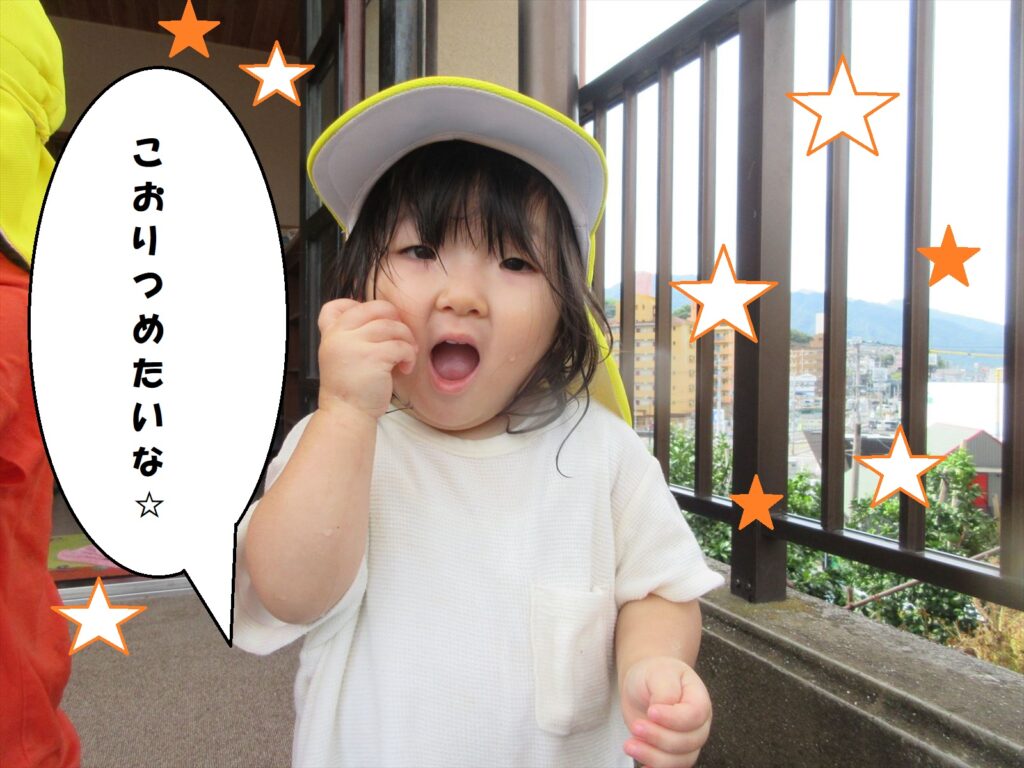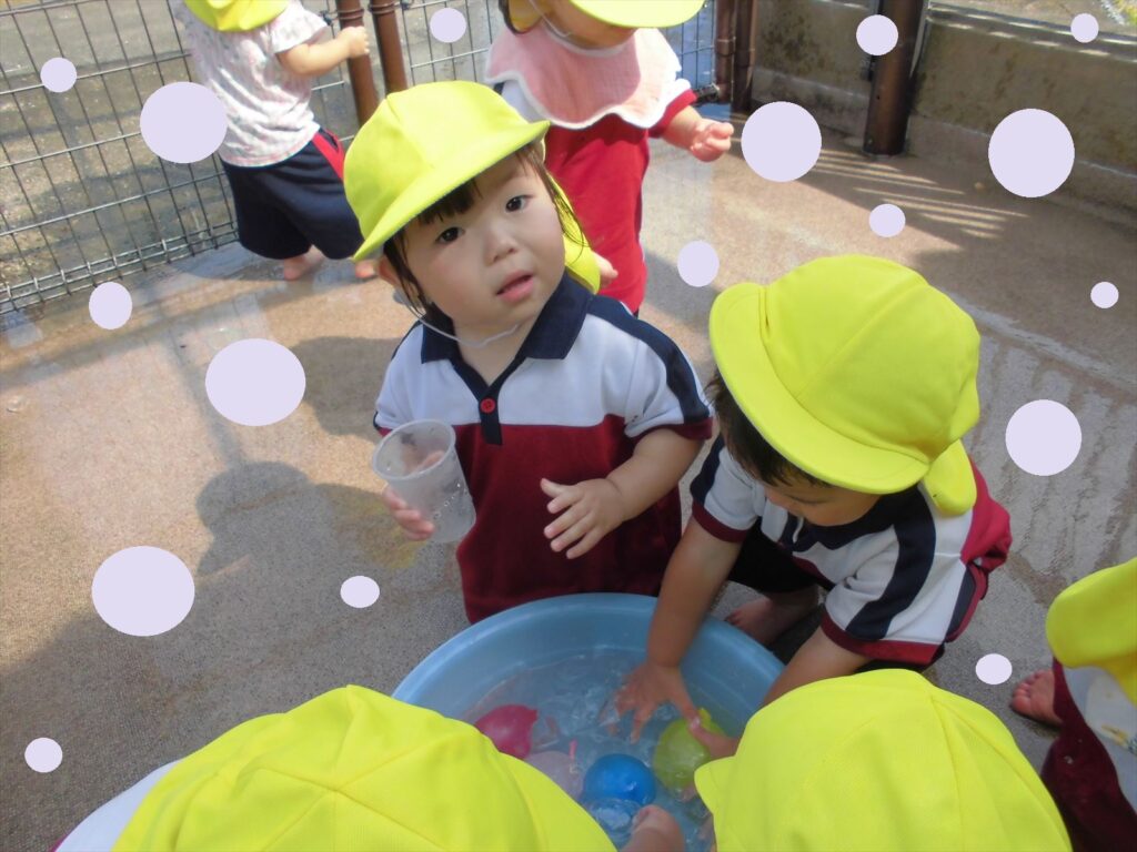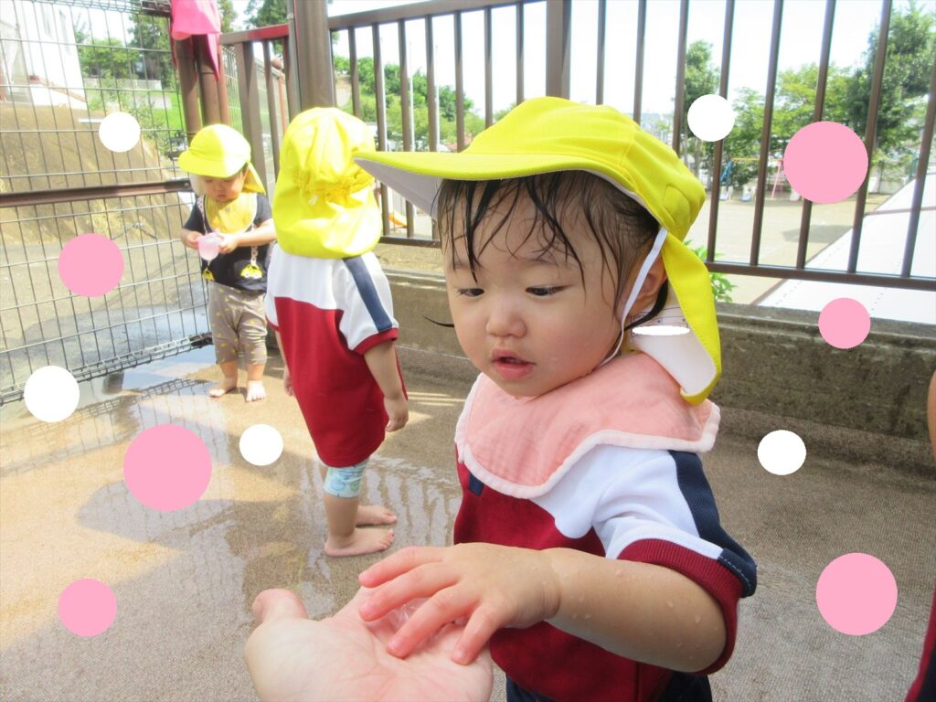 暑い日はなかなか園庭に出られないので、テラスで水遊びを楽しんでいます( *´艸`)🎵