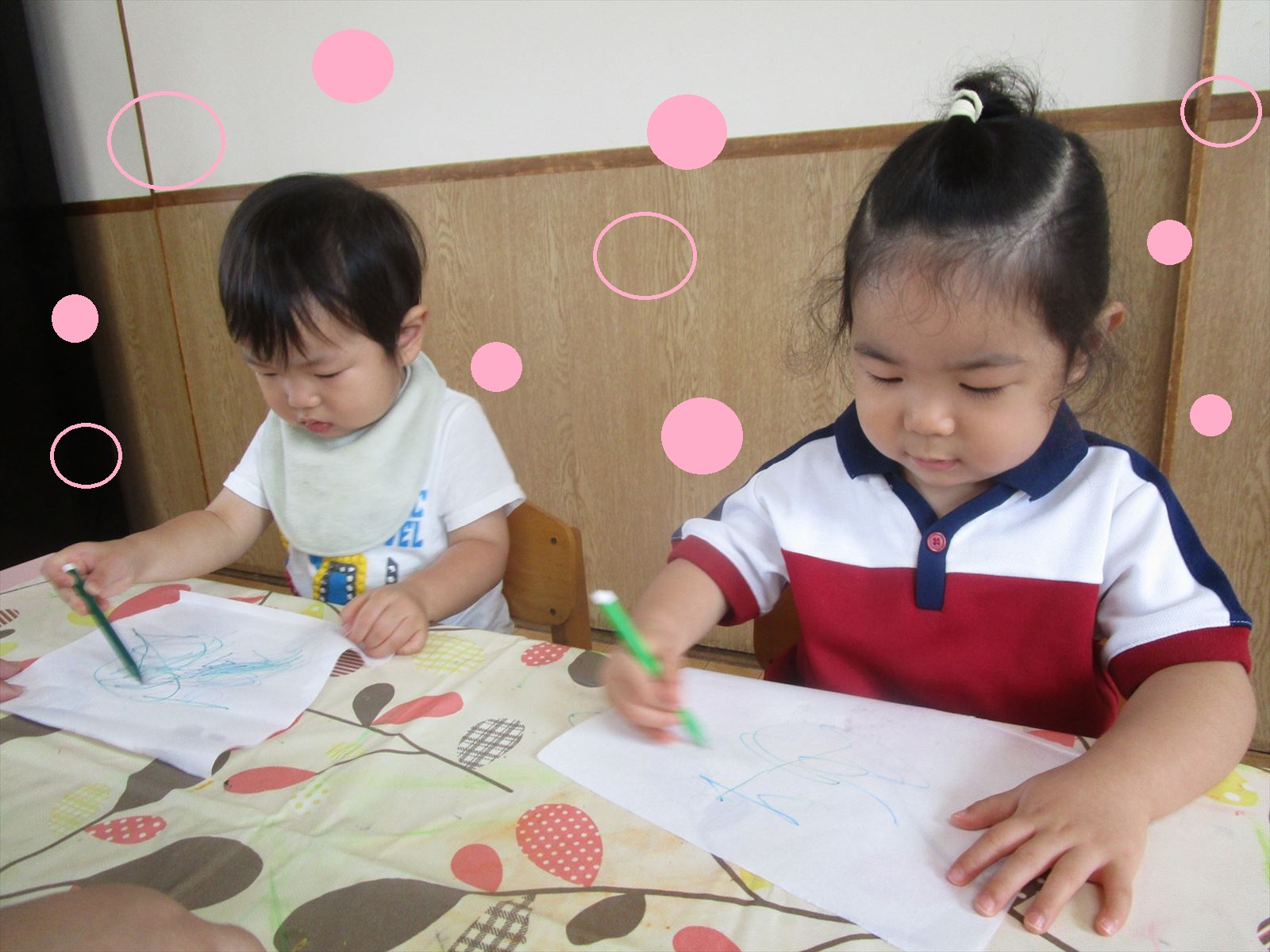まずはペンで紙にグリグリ、自由に描きました🖊