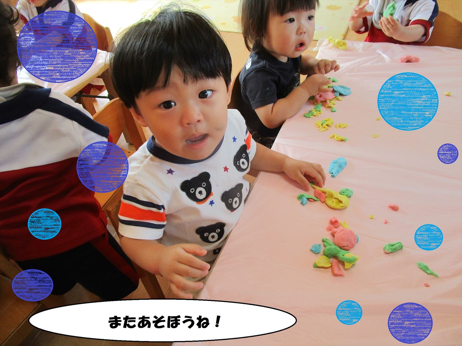 先日、小麦粉粘土で遊んだ様子を