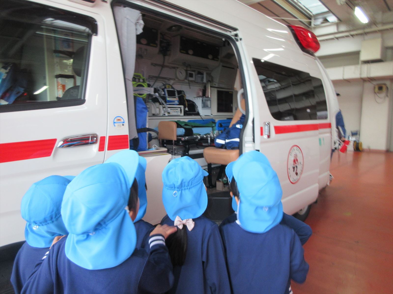 消防車を近くで見たり救急車の中を見学するなど