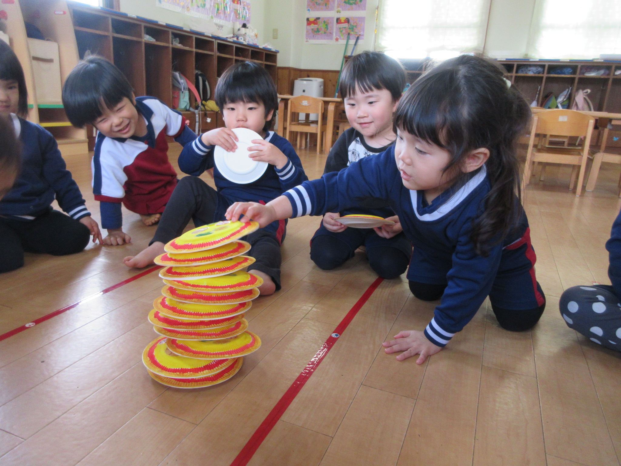 作ったピザを積み重ねて遊びました。