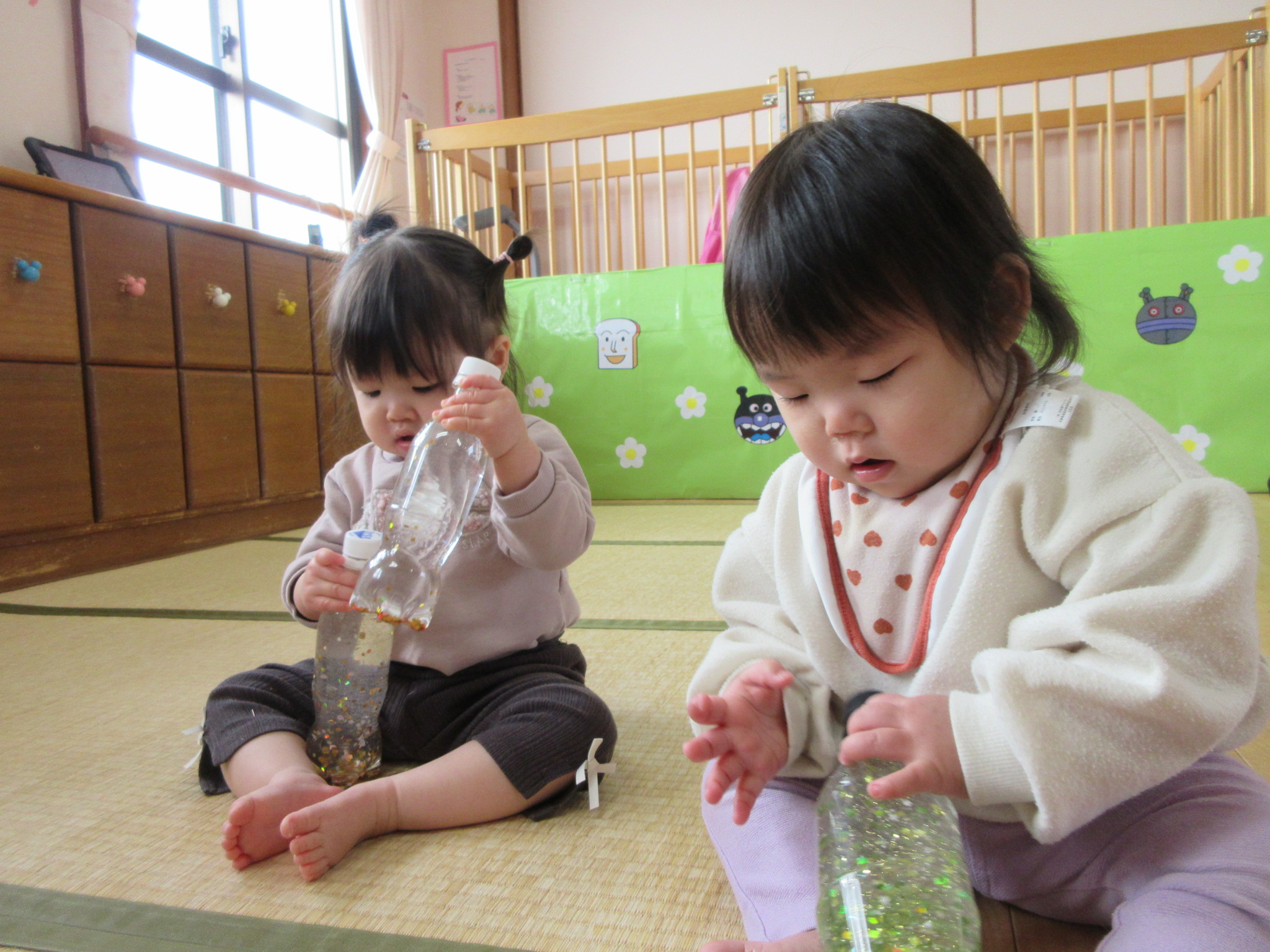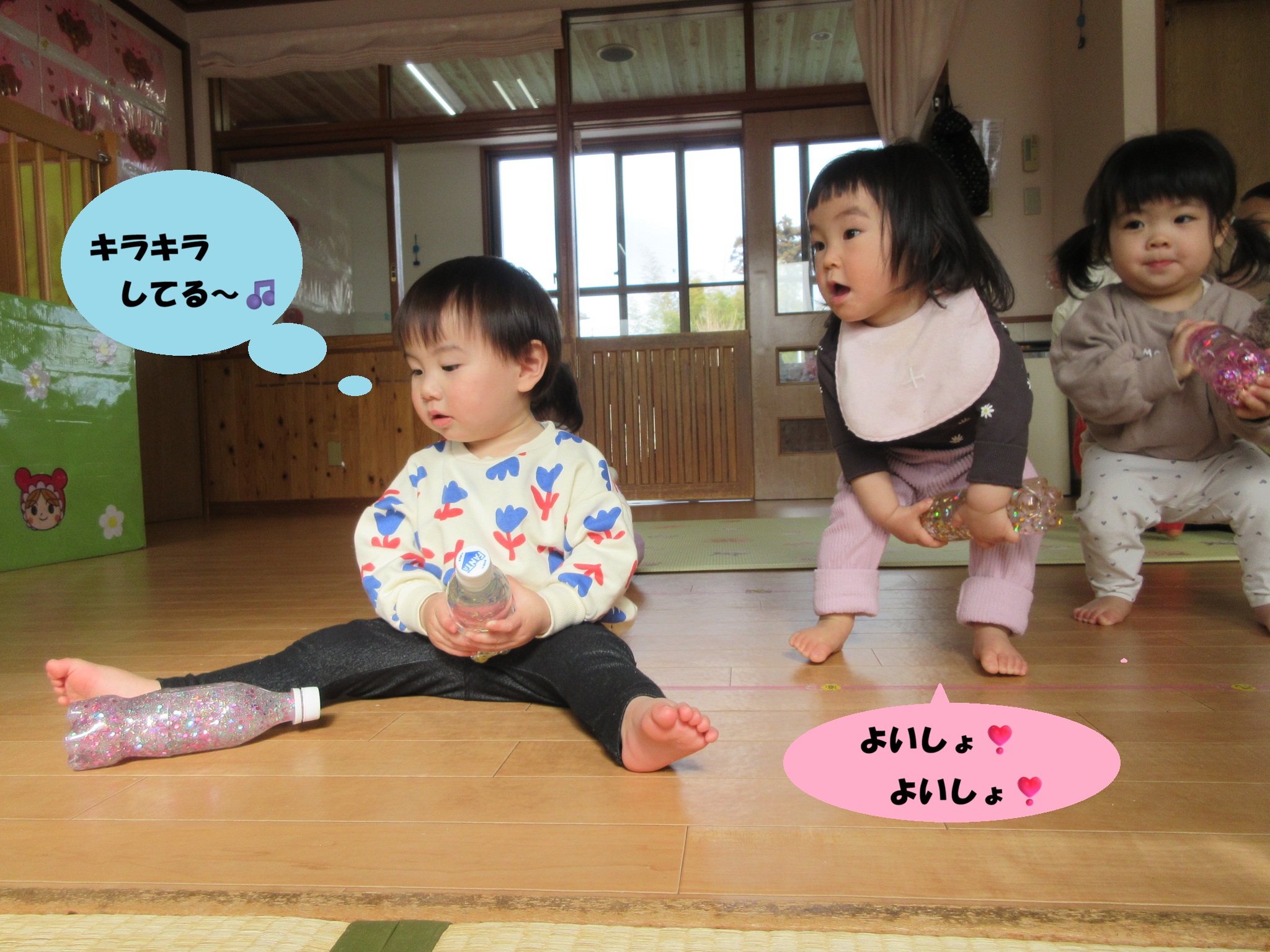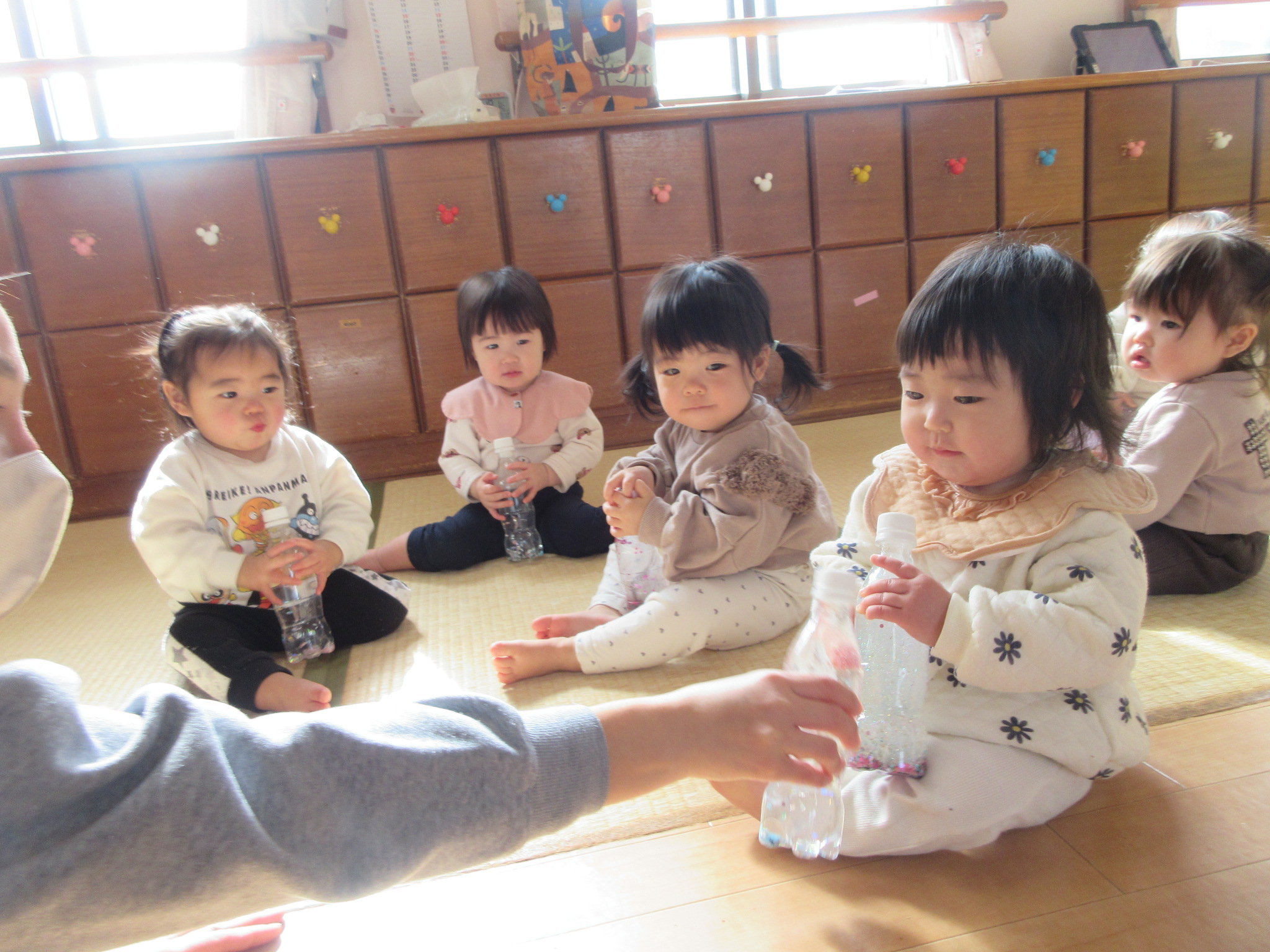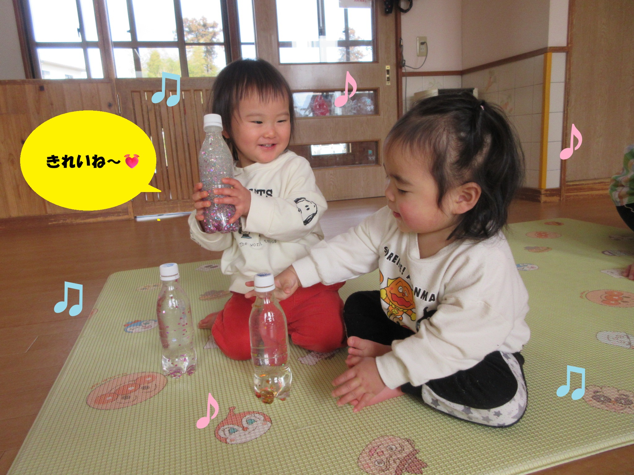 🧴センサリーボトルで遊んだよ(もも組)🧴