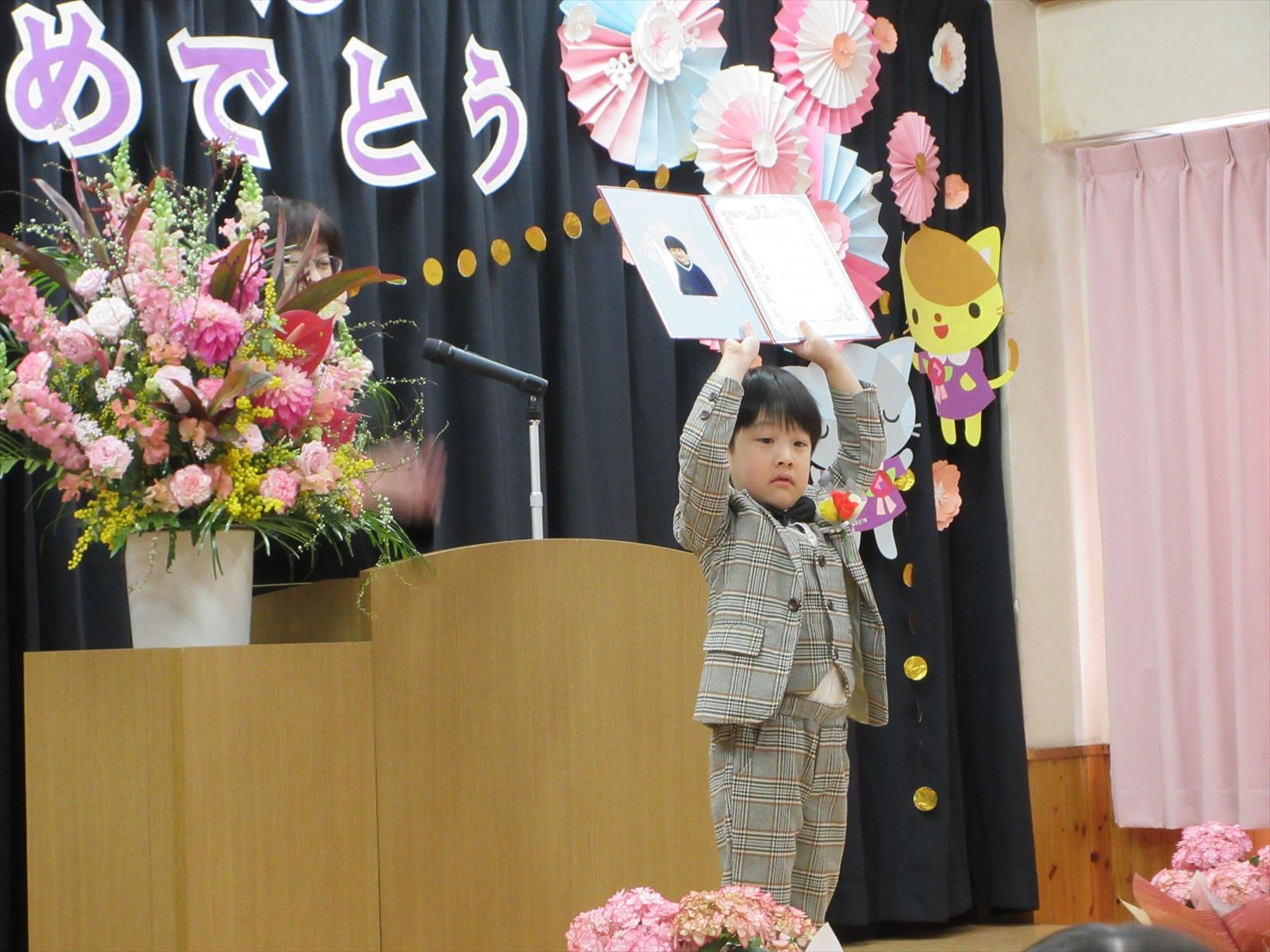 園長先生から卒園証書を受け取り、