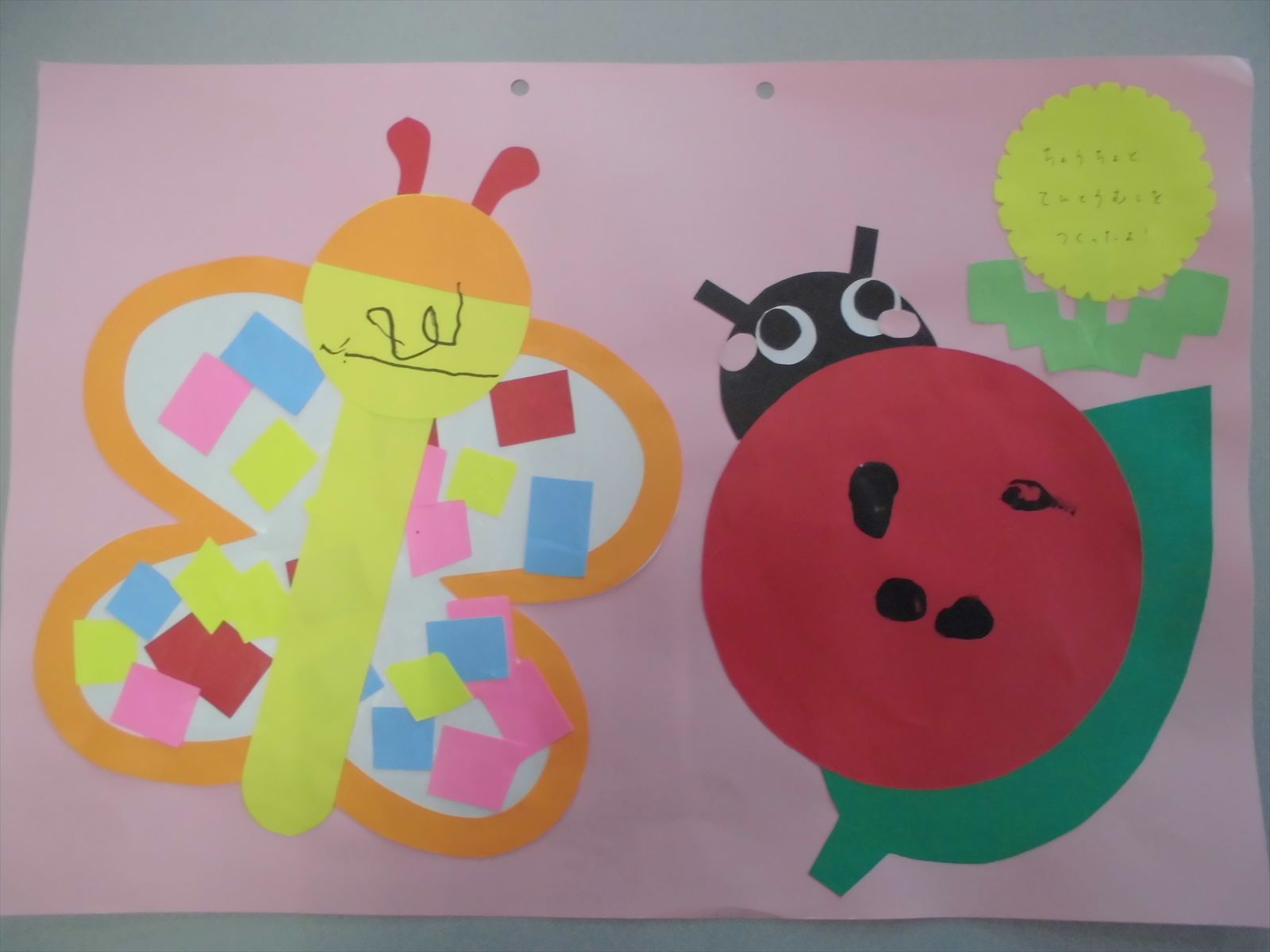 のりを使い、ちょうちょに