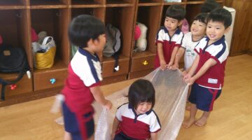 プチプチシートで遊んだよ(すみれ組)