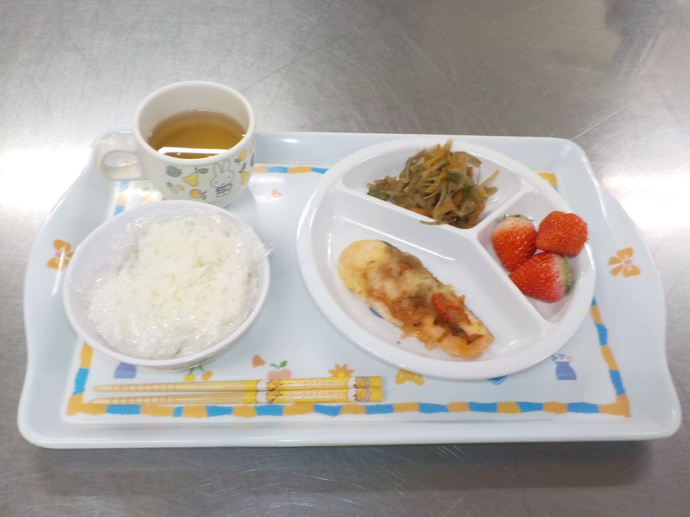 2020.04.13 ◎今日の給食・おやつ *゚*゚ かにかま入りスクランブルエッグ *゚*
